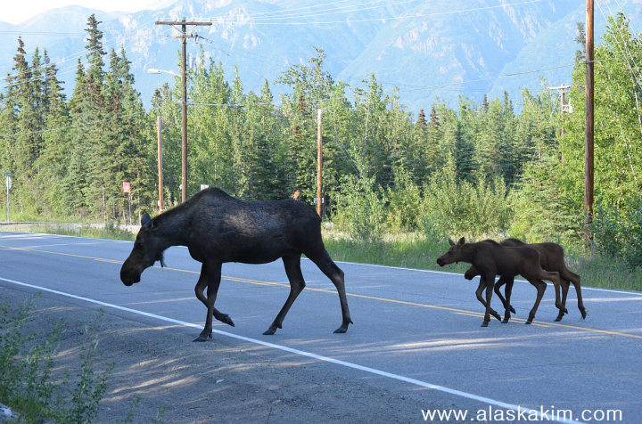 새끼 무스들도 어미 뒤를 따라 도로로 나옵니다.