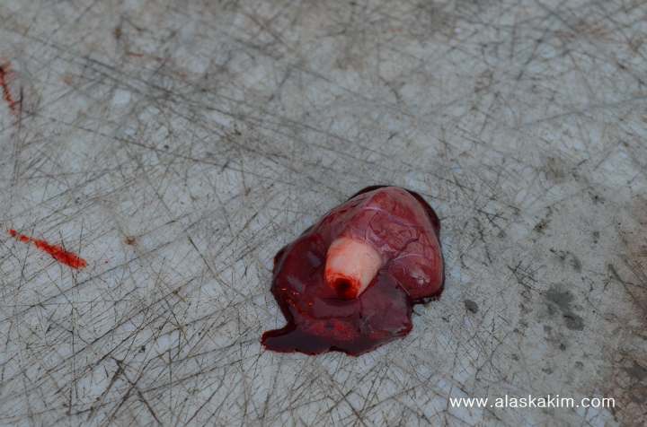 그러더니, 다음에는 아가미를 벌려 피를 뽑아내기 위해 칼로