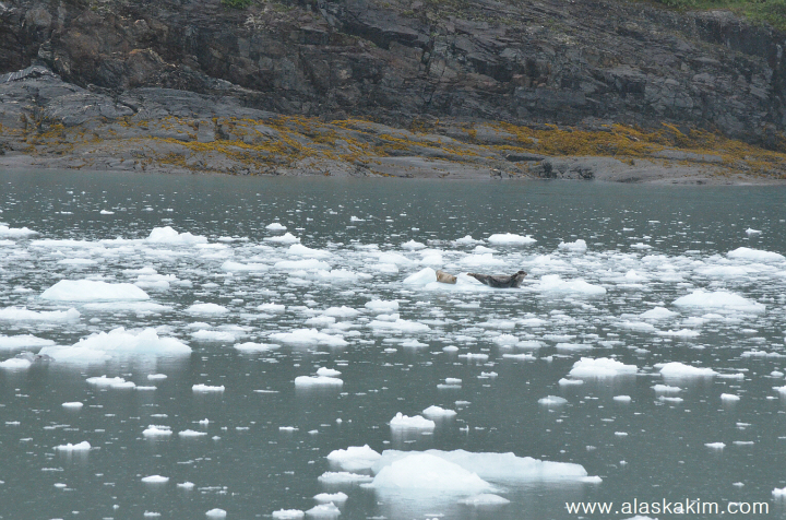 저 멀리 물개들이 유빙 위에서 노닐고 있네요.