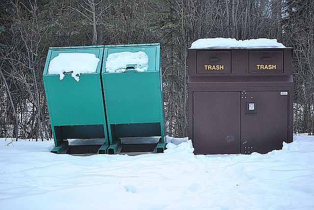 쓰레기통을 사람이 아니면 열 수 없도록 해 놓았습니다.