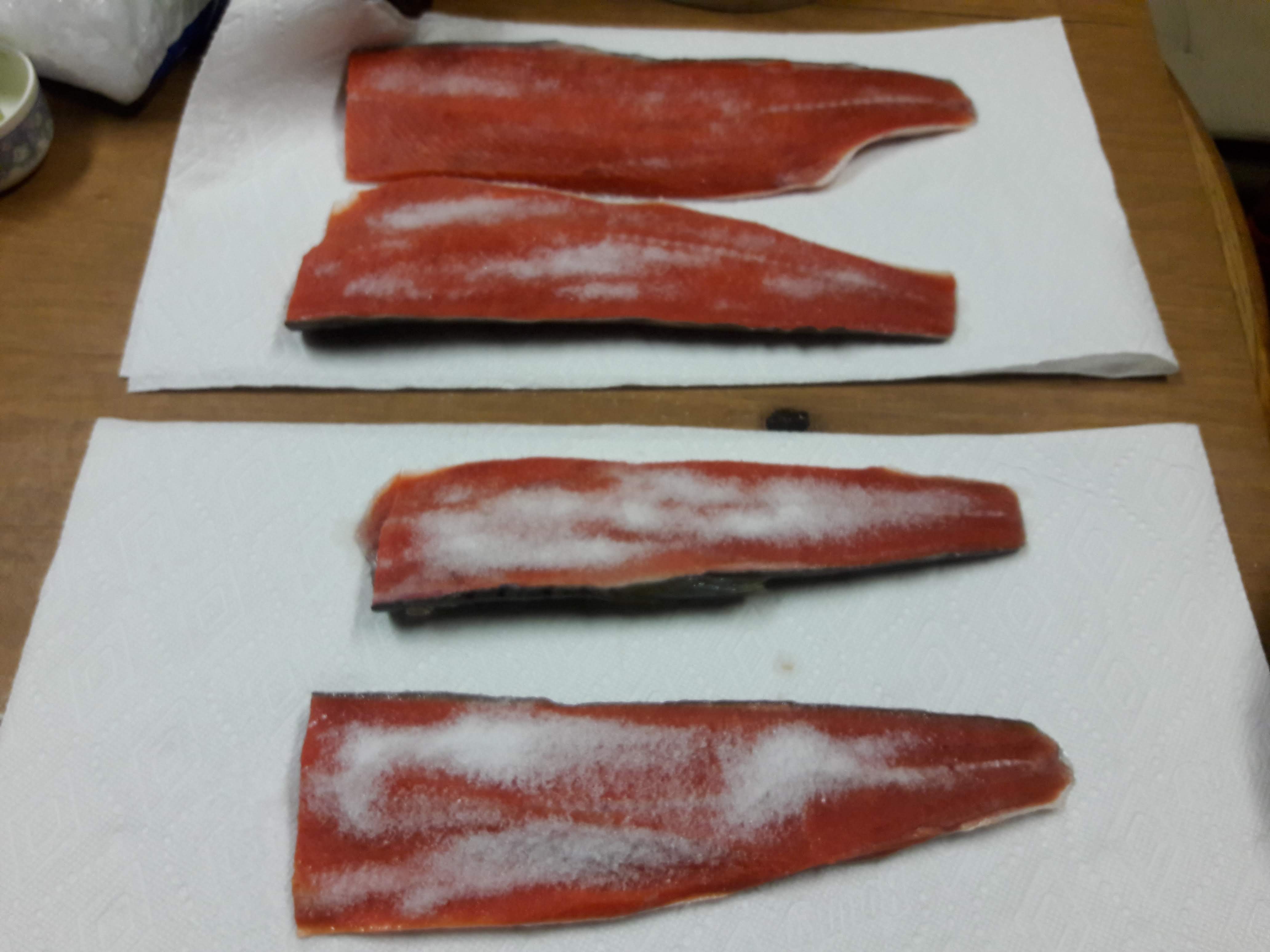 연어를 잡아 손질을 하고 나서 소금과 청주를 뿌려