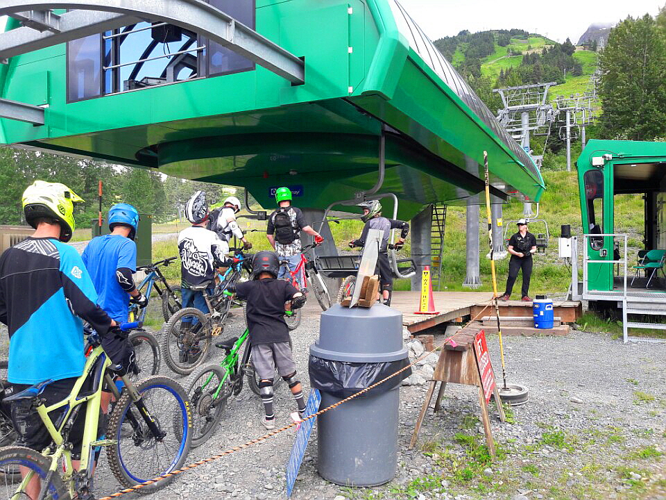 자전거와 함께 리프트를 타고 산 정상으로 이동을 하여
