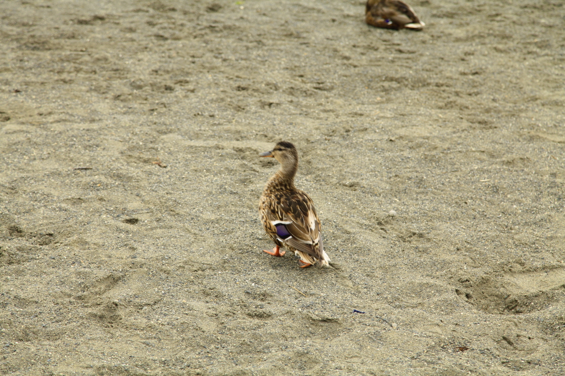 아기 청둥오리가 백사장을 누비고 다니네요.