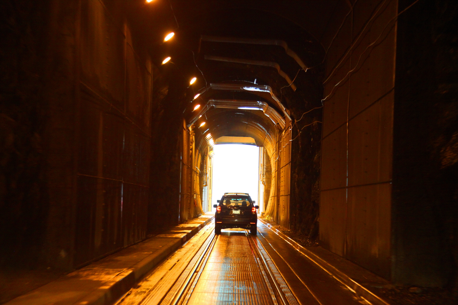 Anton Anderson Memorial Tunnel은 기차가 지나갈 때는