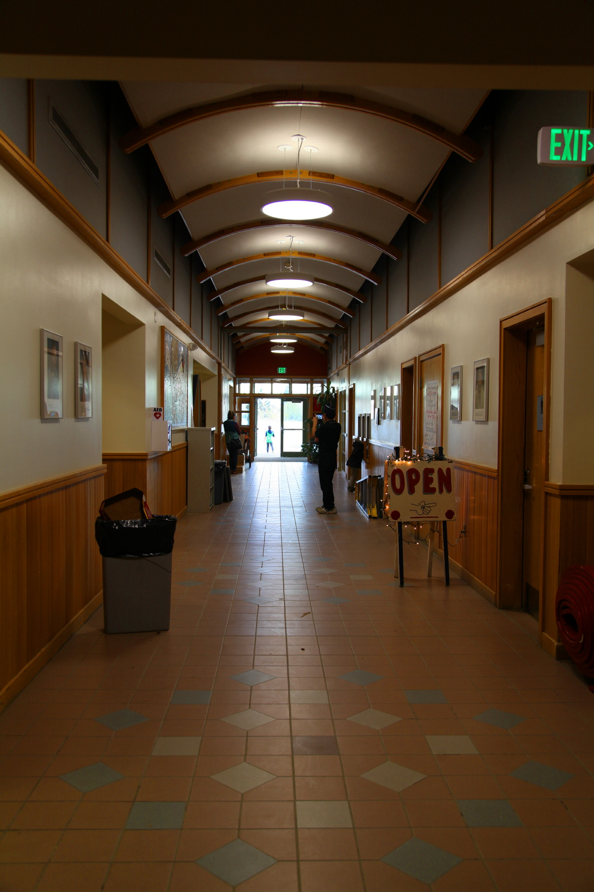 오른쪽 강당을 잠시 이용해 예술 작품들을