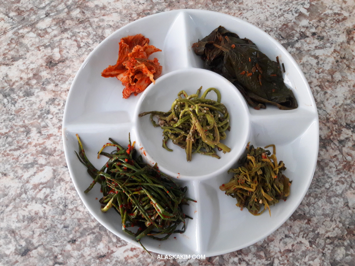 알래스카 야생에서 지천으로 나는 각종 나물로 만든 요리입니다.