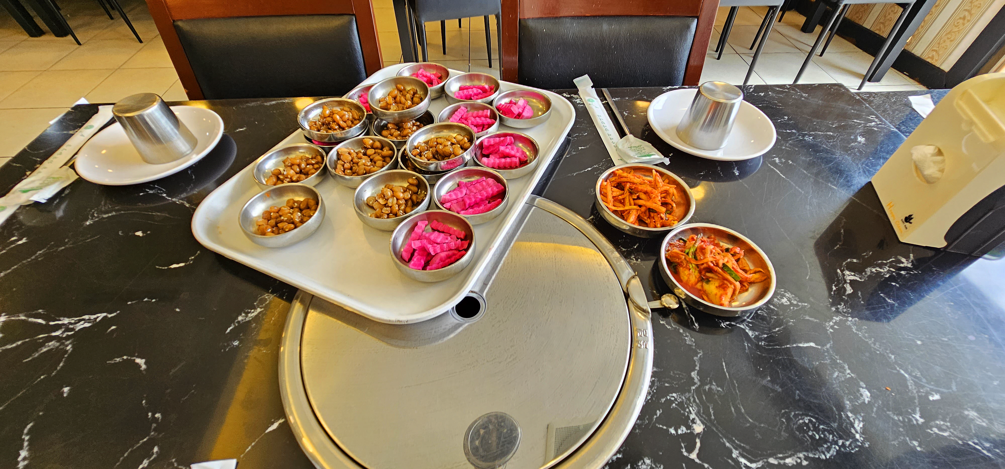 밑반찬이 하나씩 등장을 하네요.