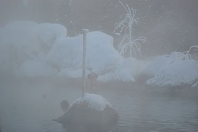 일부러 저렇게 머리 위에 눈을 얹어 놓고 온천욕을 즐깁니다.