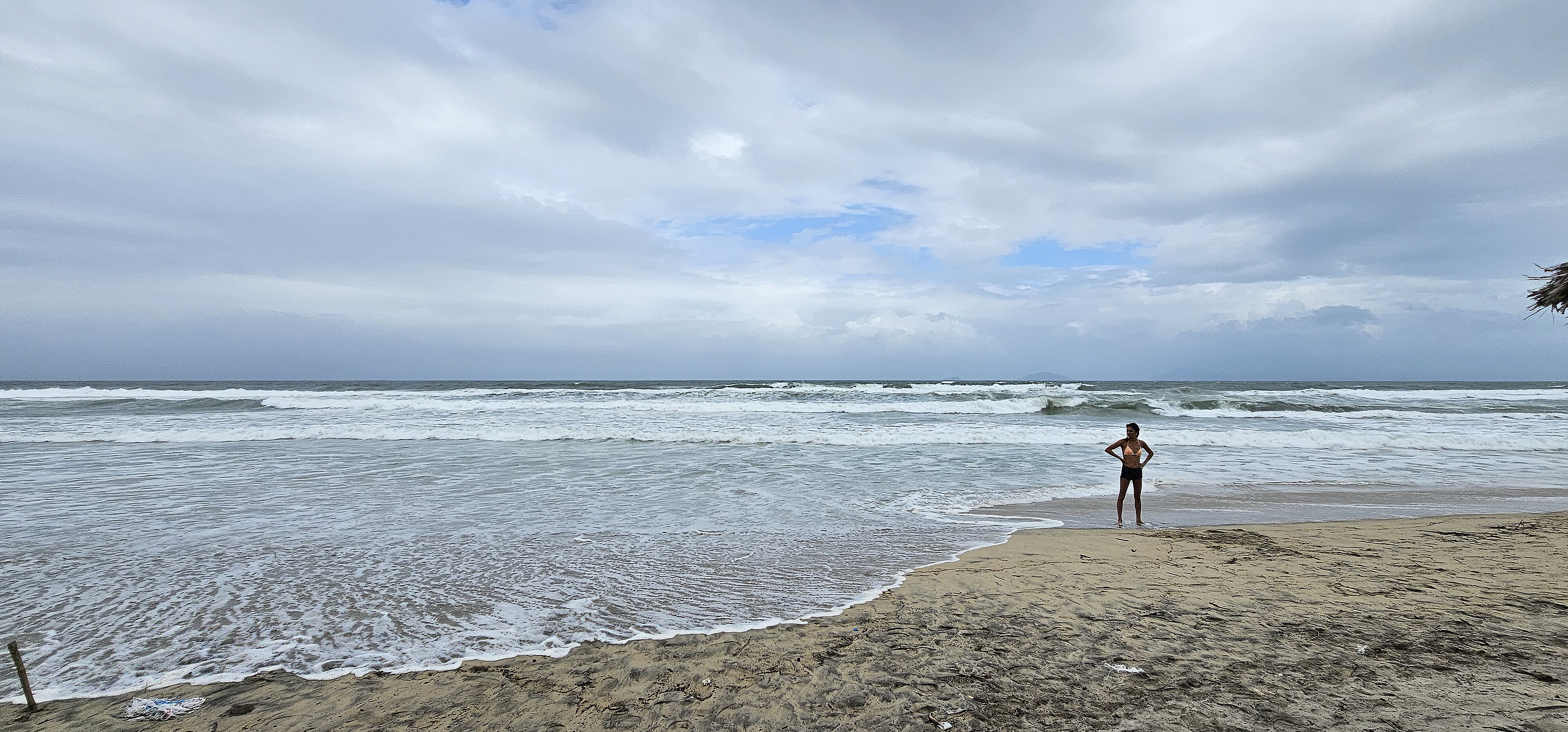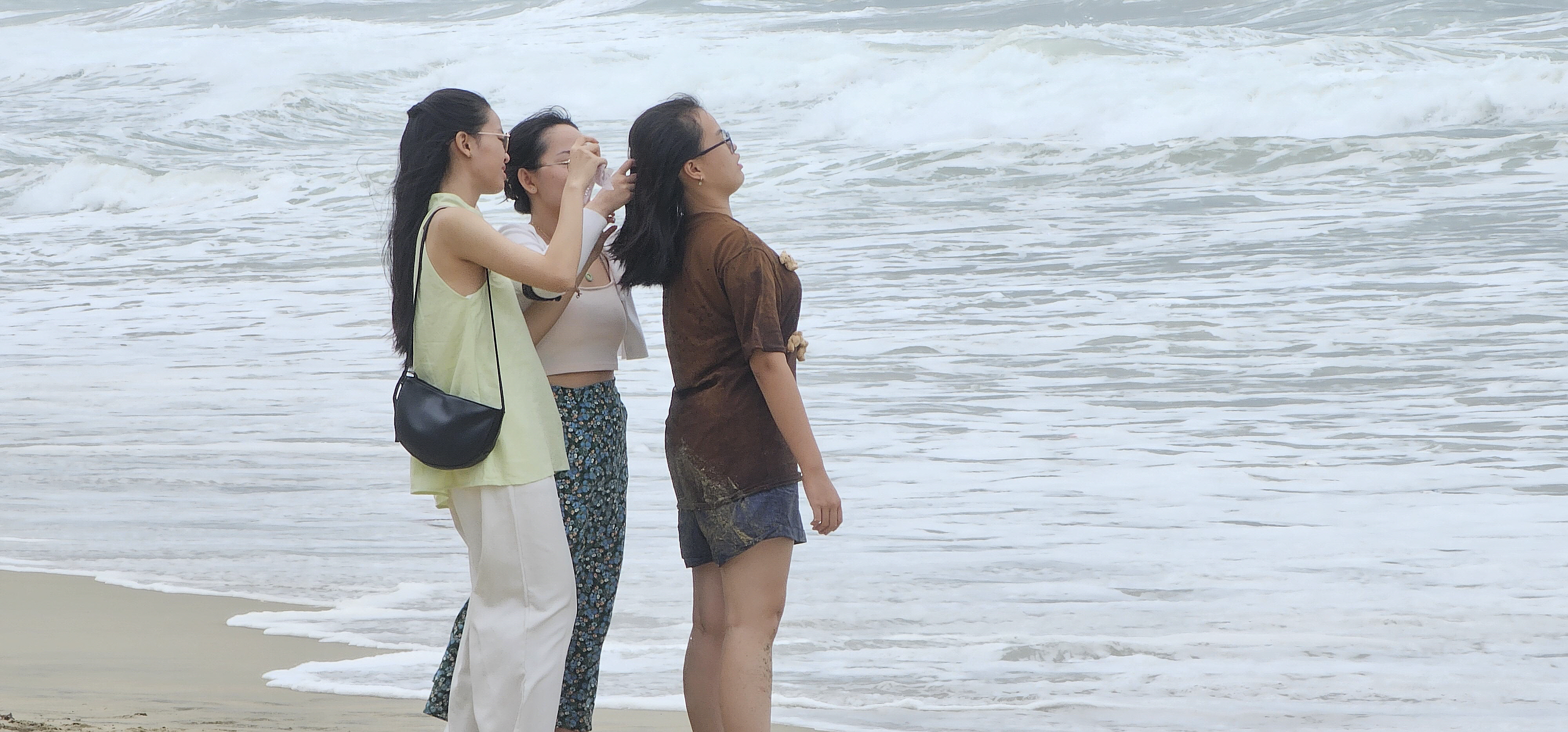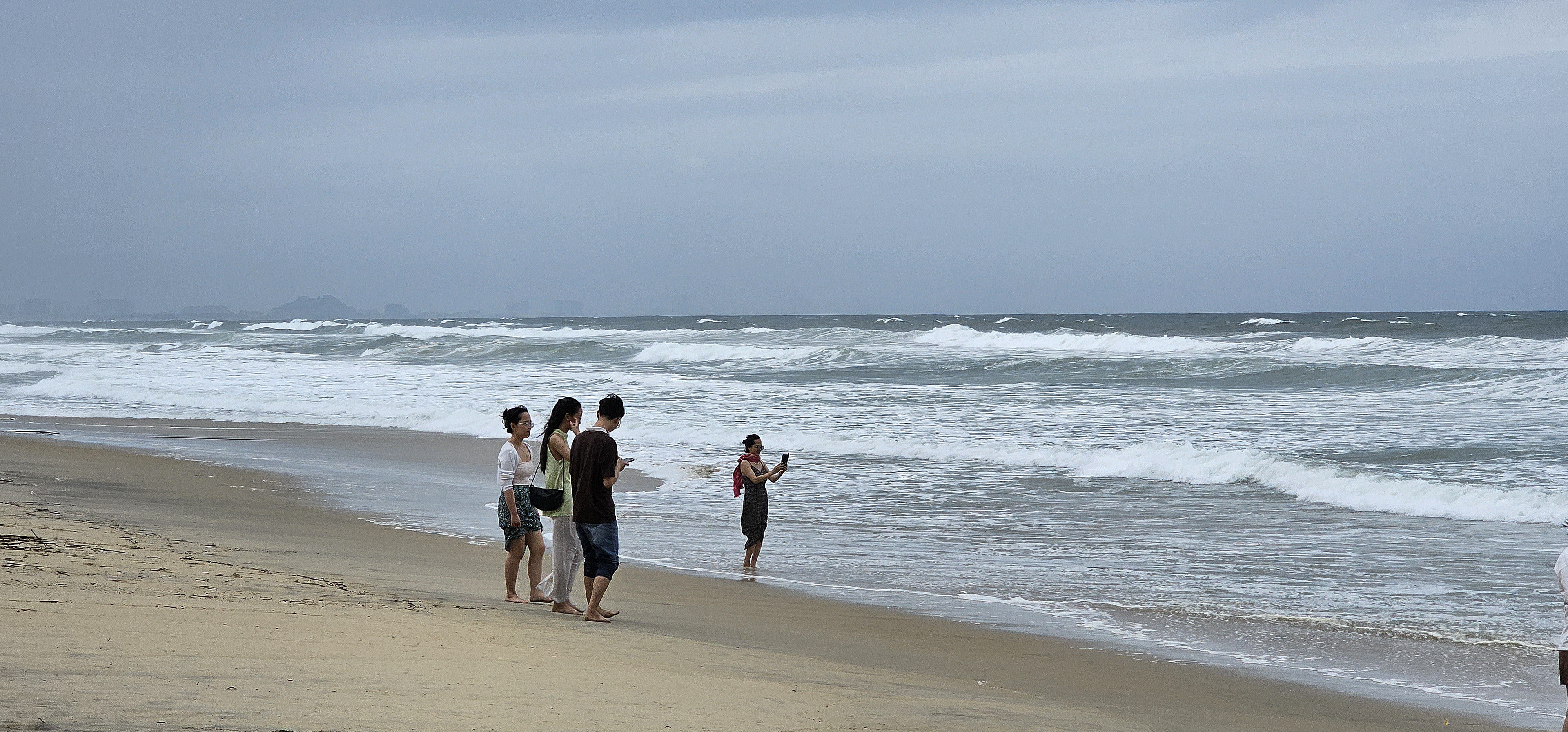 베트남 호이안의 태풍 부는 안방 비치를 가다