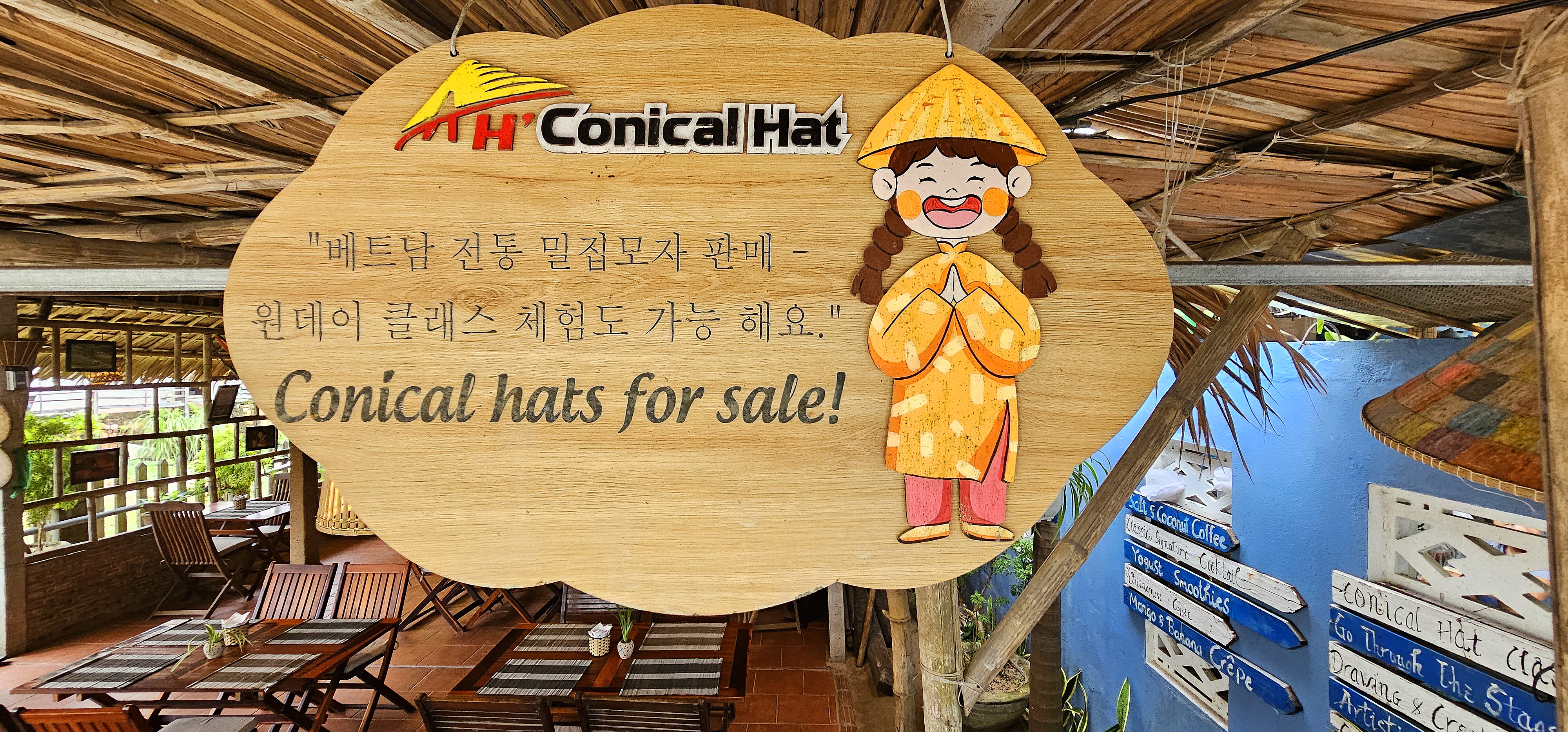여기도 카페인데, 차와 식사류도 팔고 저렇게 베트남 모자도 팔면서