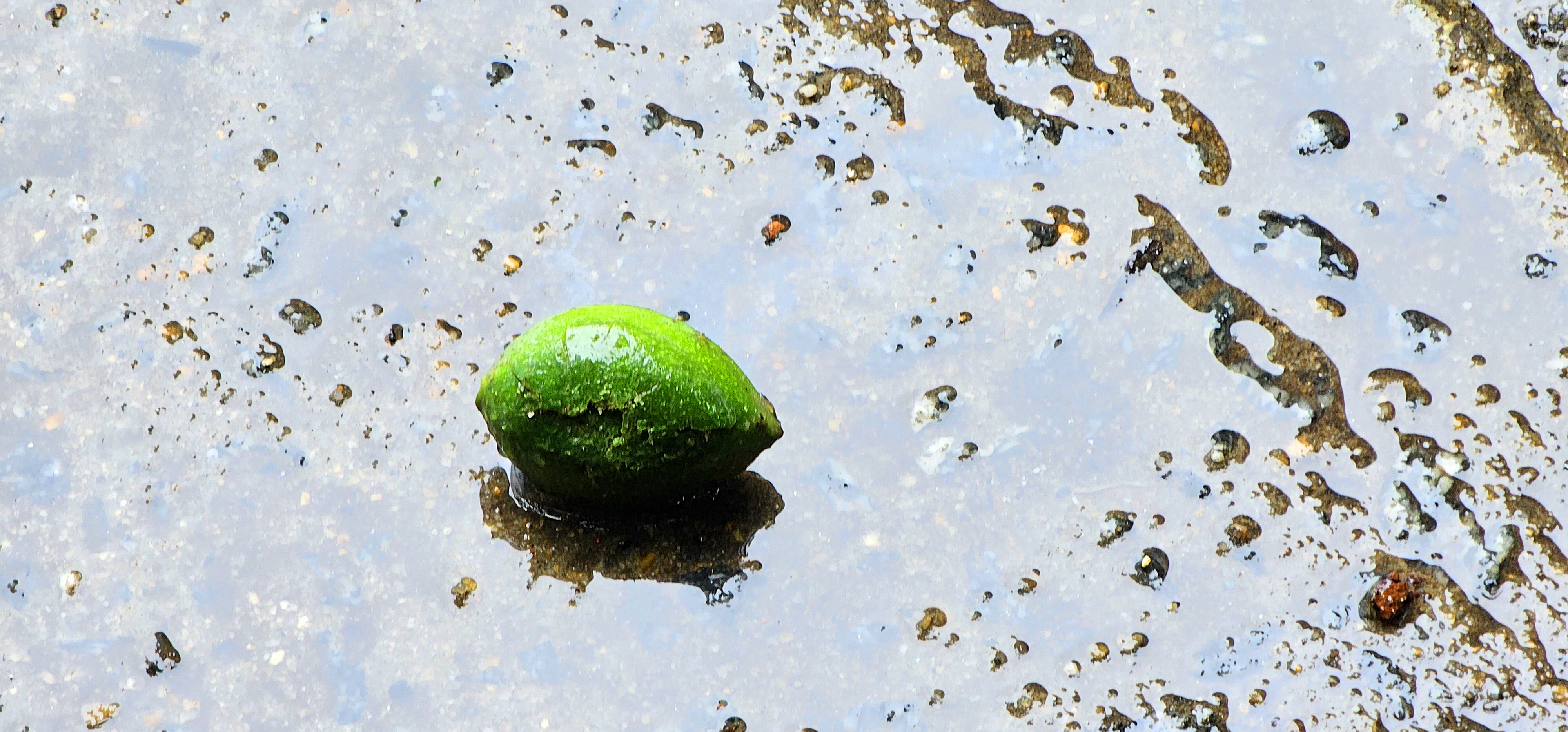 길을 가는데 과일 하나가 비를 맞아 떨어져 있는데