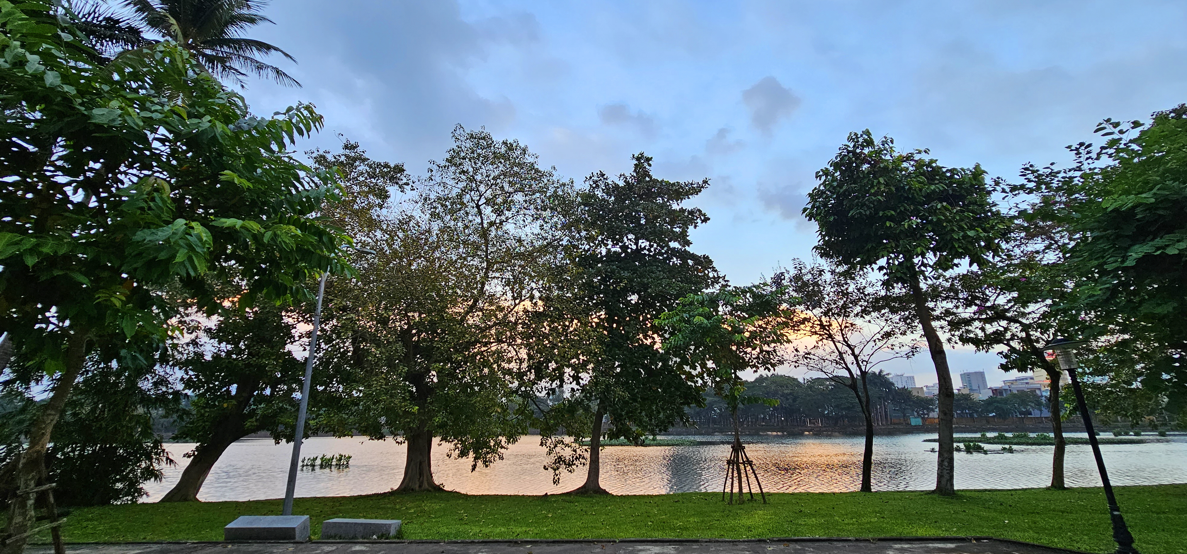 아름다운 공원에 서서히 노을이 지고 있습니다.