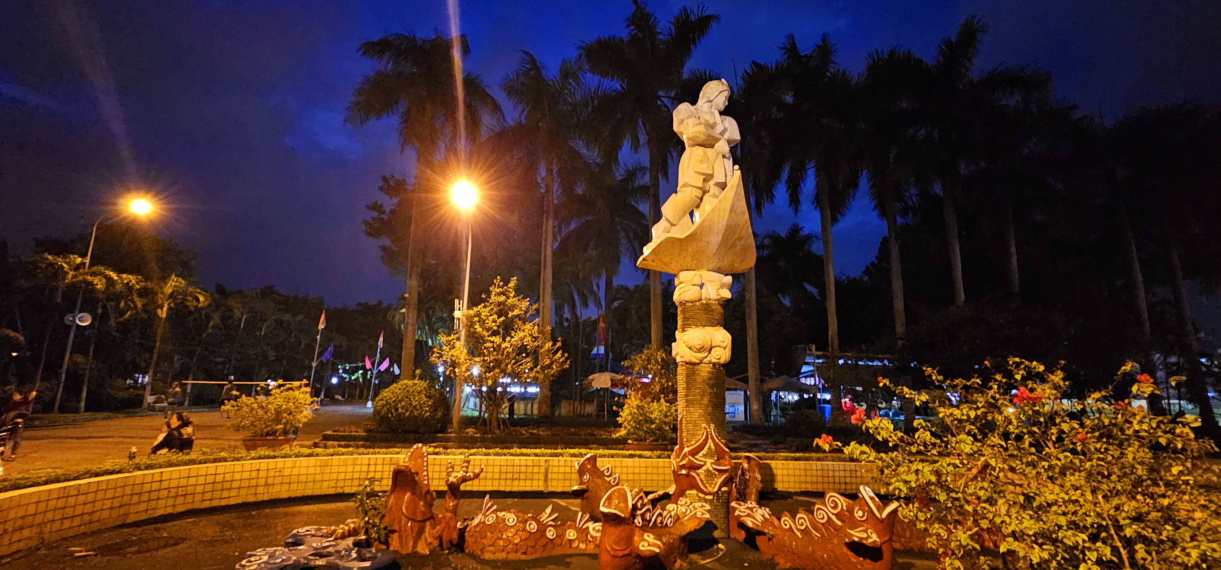 용을 짓밟고 선 여성상의 동상이 모계사회임을
