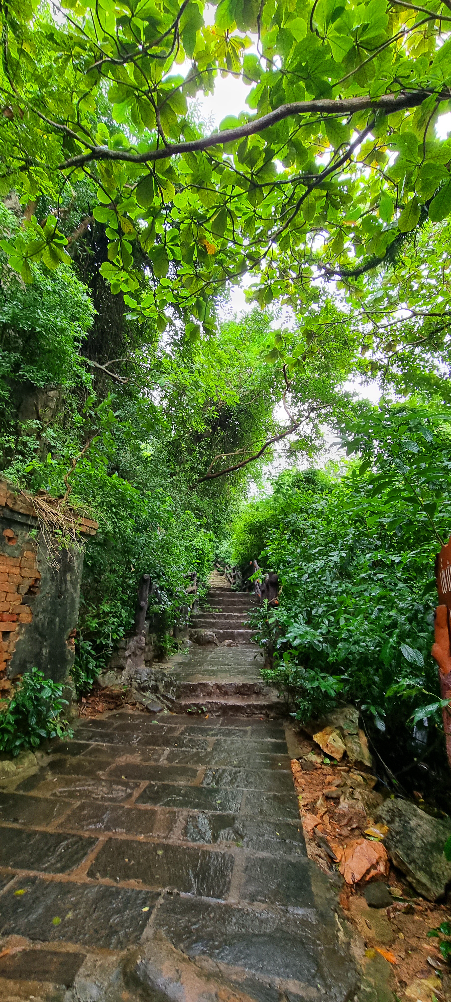 동굴로 들어가는 입구의 계단이 너무 미끄러워