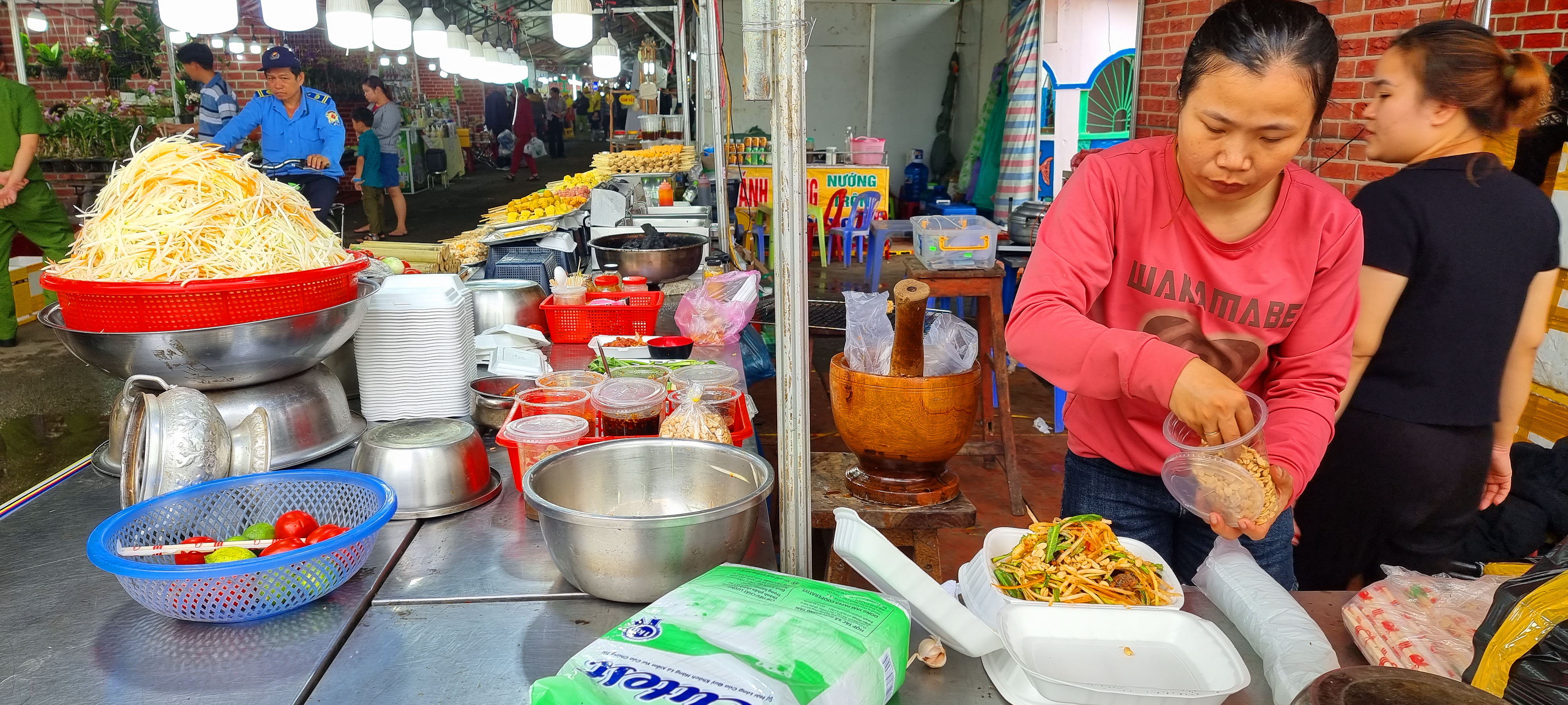 뒤, 현수막에는 음식 가판대라고 적혀 있네요.
