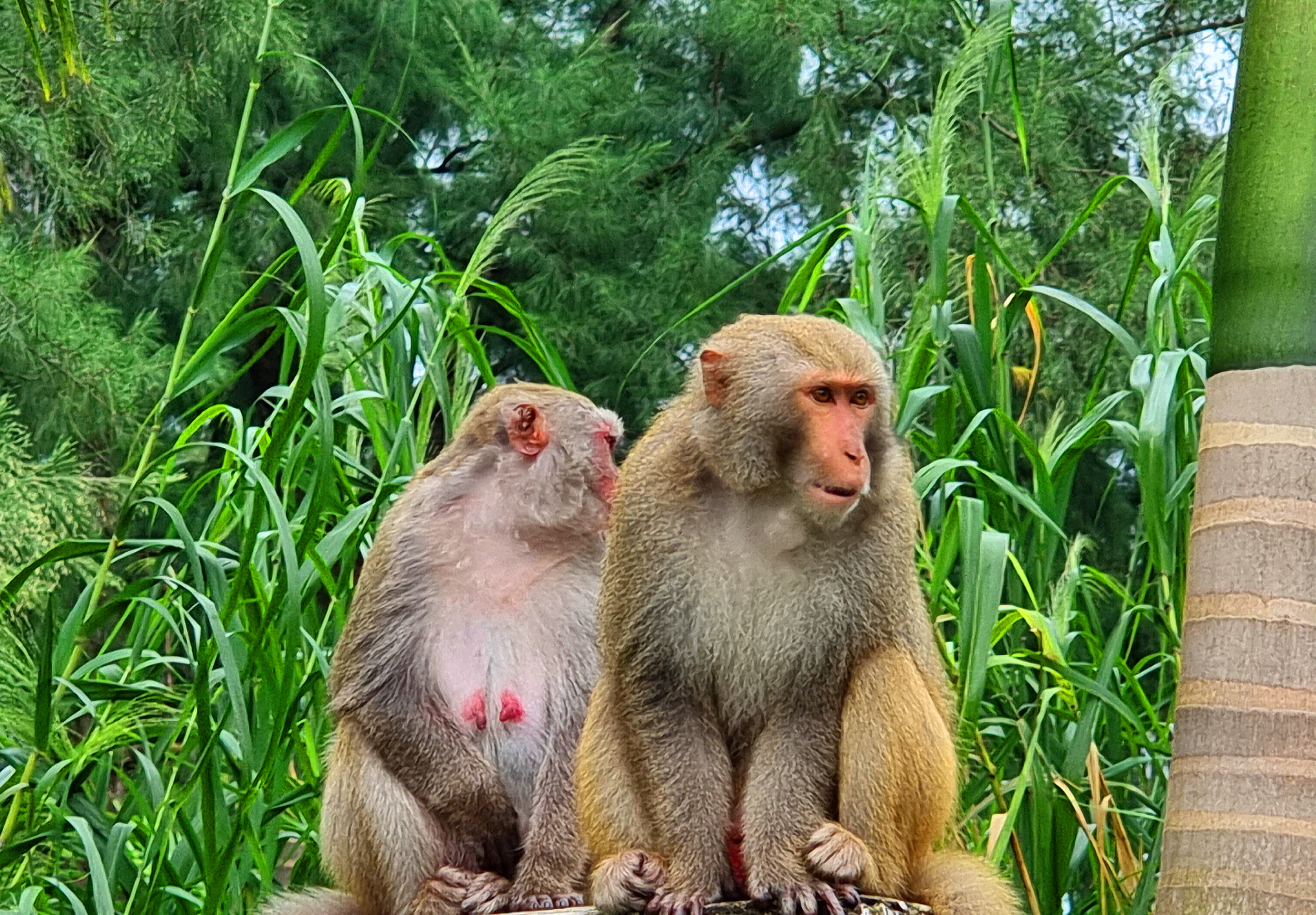 암컷 원숭이는 연신 수컷 원숭이 눈치만 보고