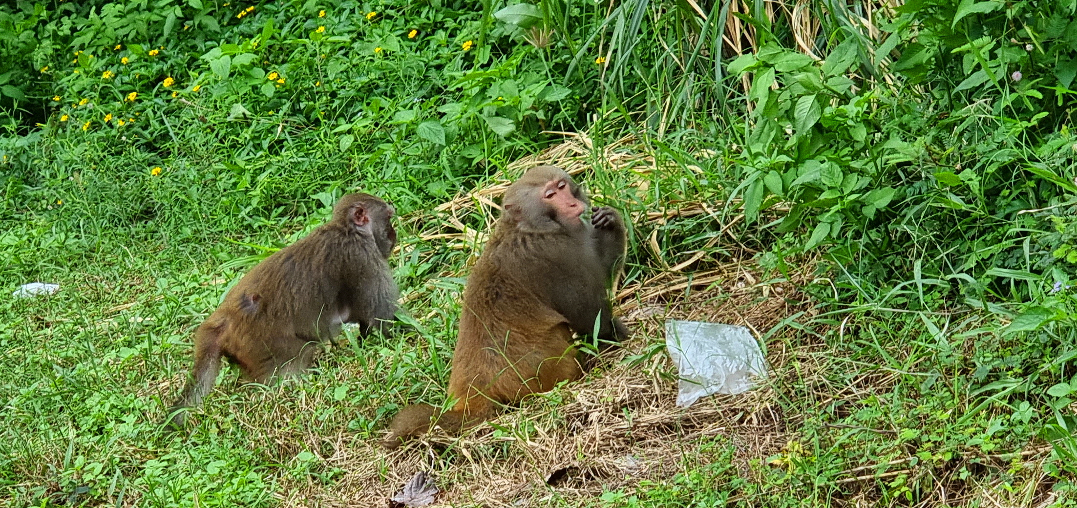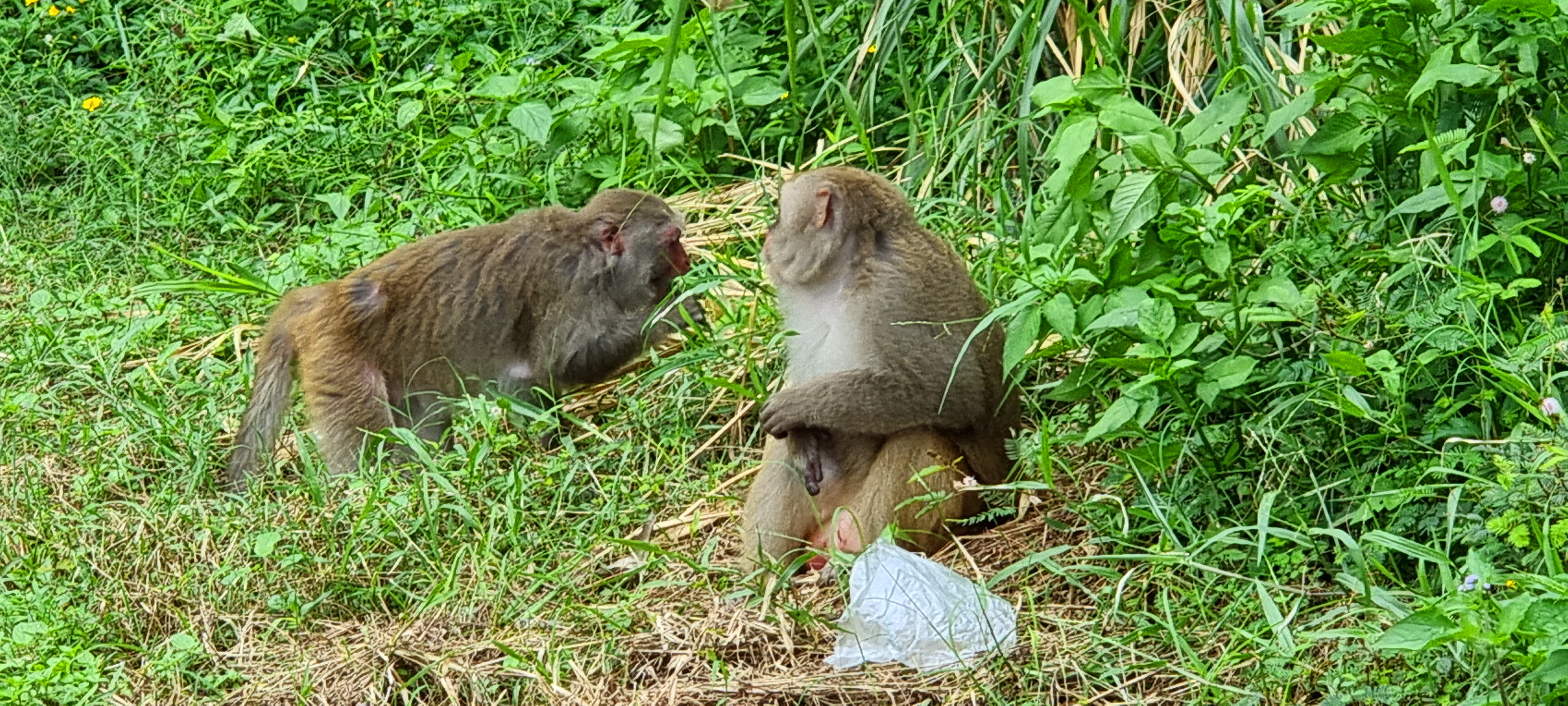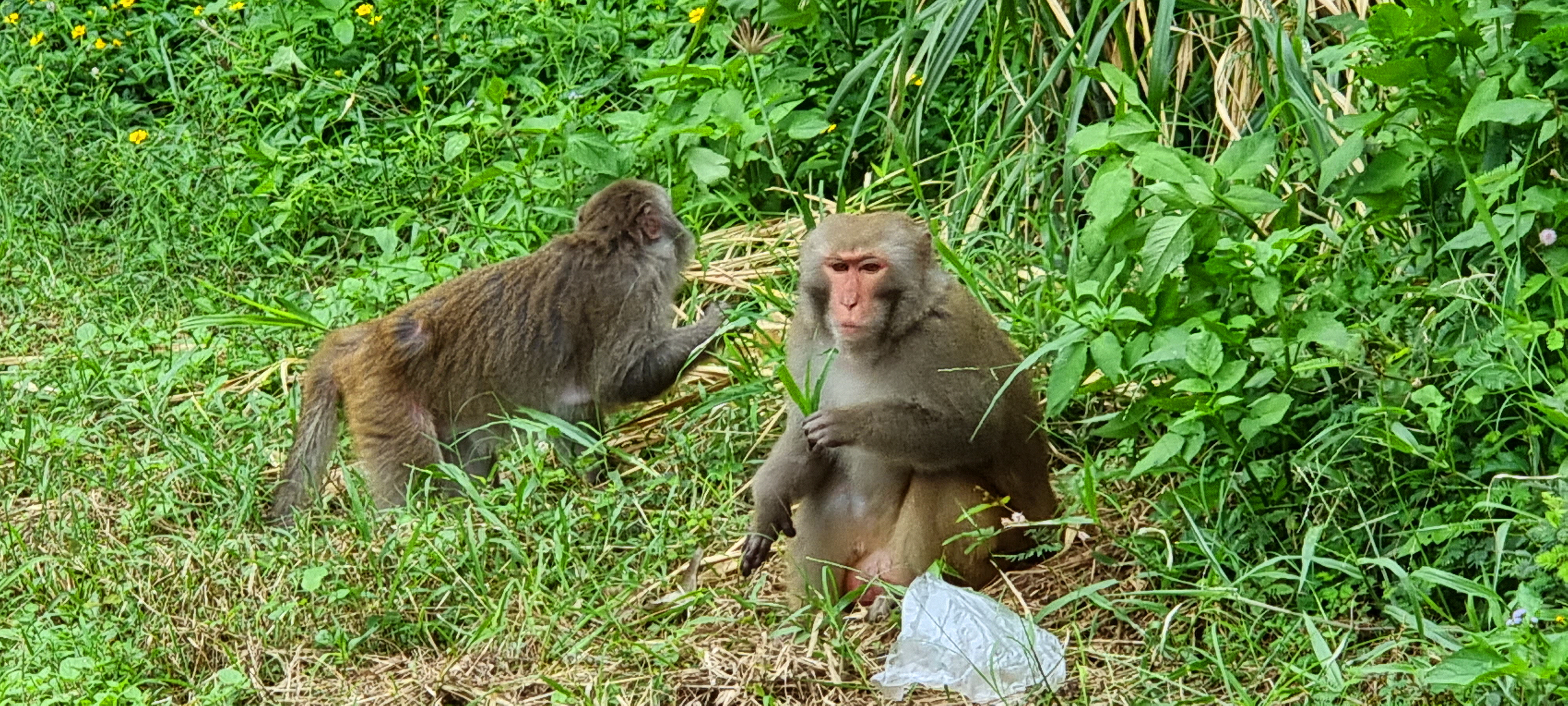 원숭이 가족을 만나 잠시 인사를 나눴습니다.