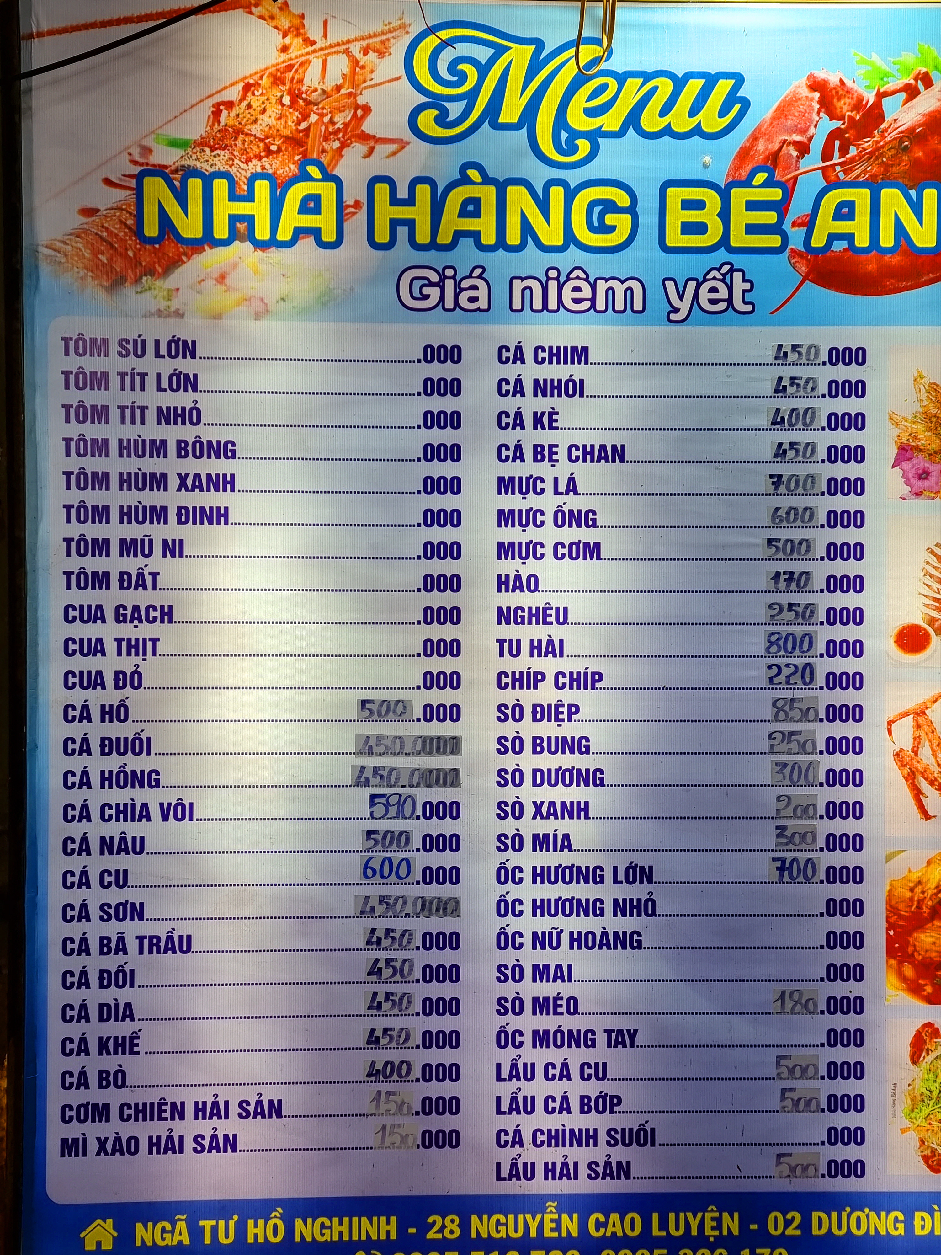 는 3,800원, 중간에 있는 반미와 소고기 스테이크는 6,000원