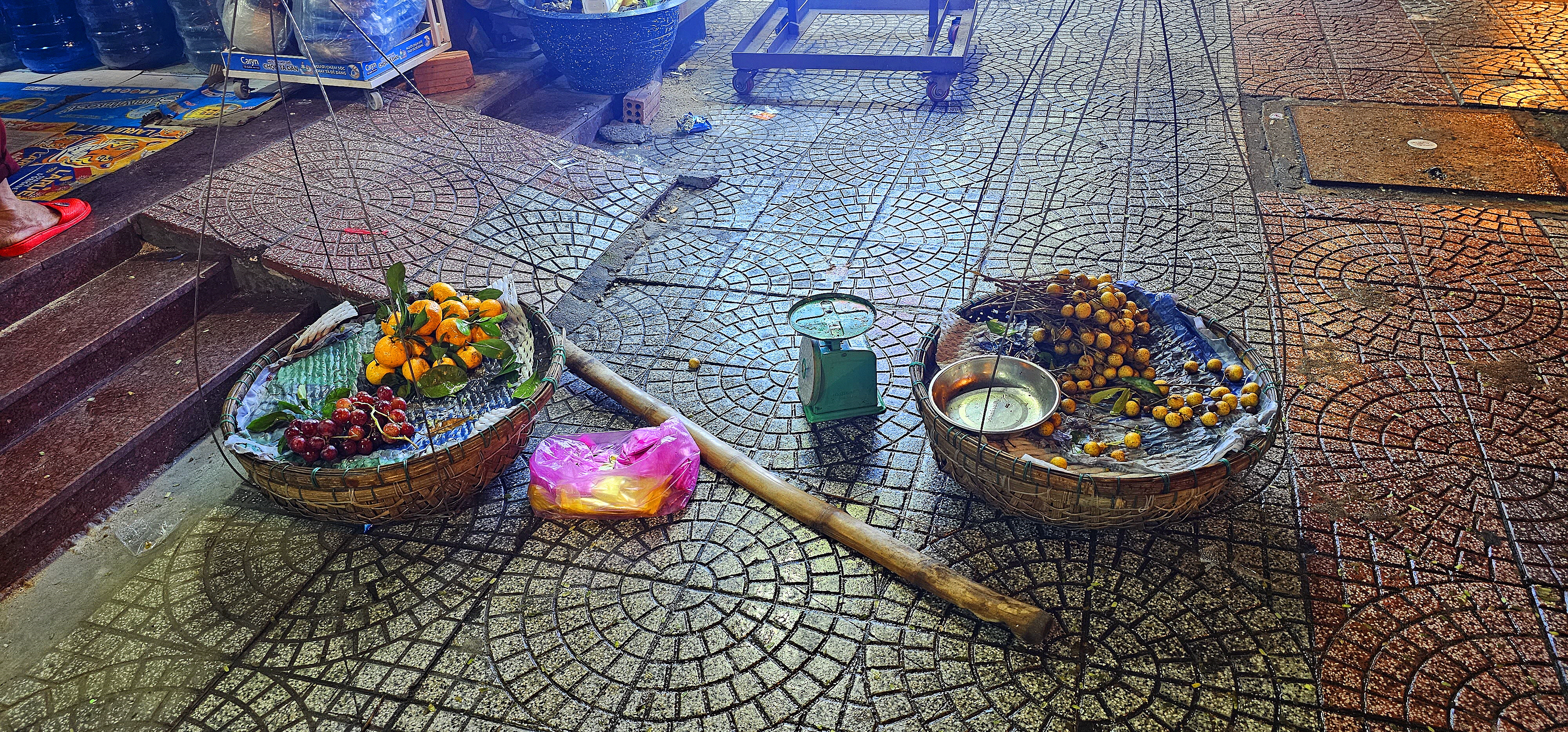 두 개의 바구니를 어깨에 메고 돌아다니시는