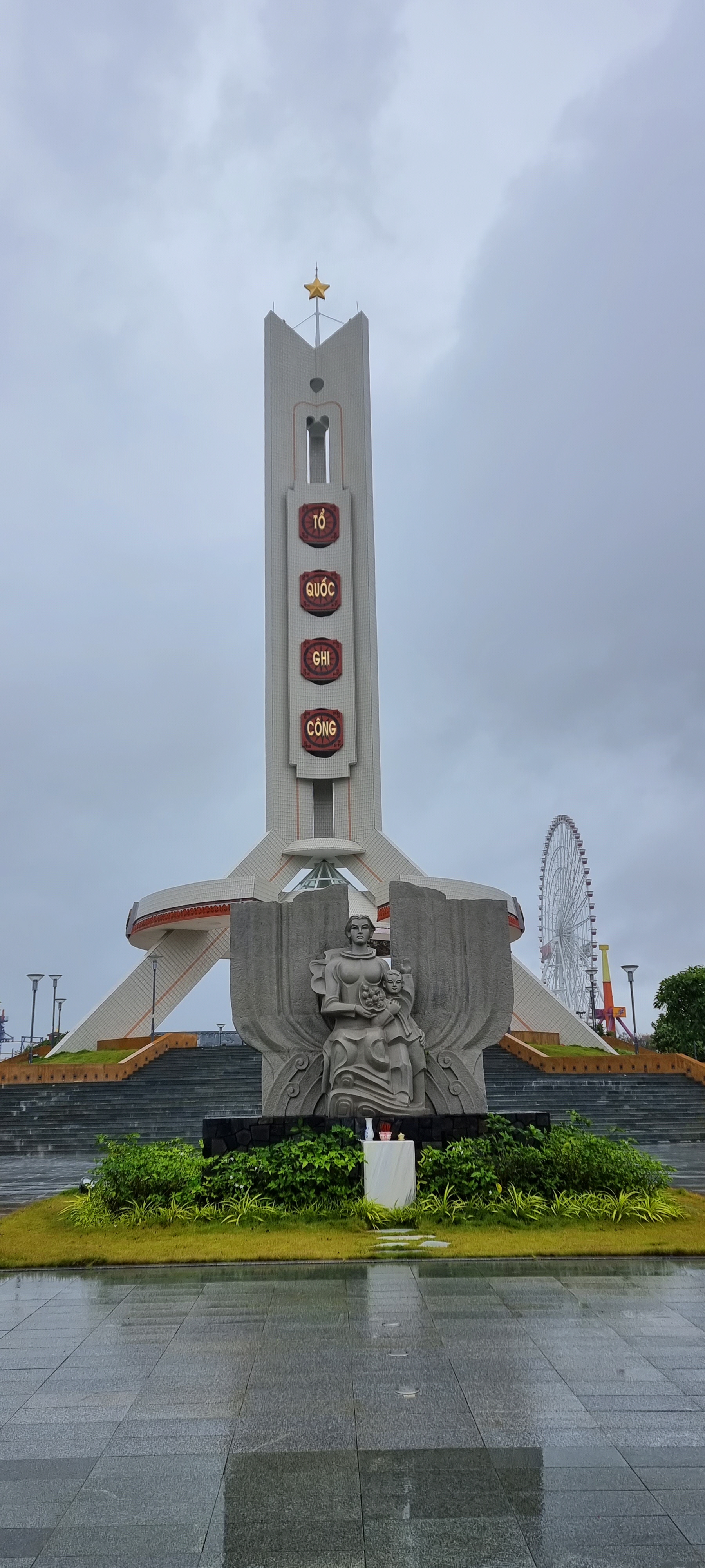 기념탑인데 국가, 동지, 노동이라고 적혀 있네요.