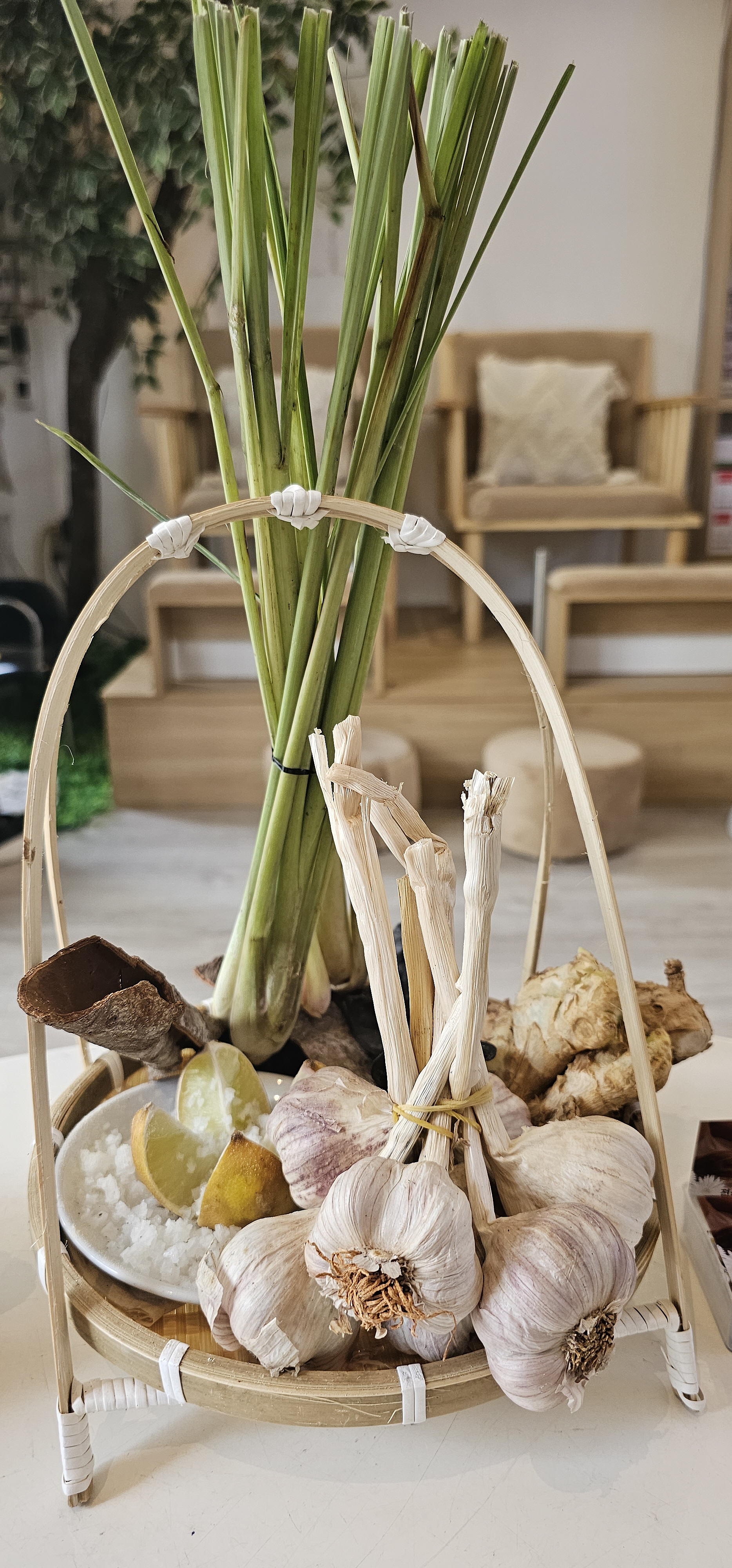소금과 레몬, 마늘과 계피가 놓여 있네요.