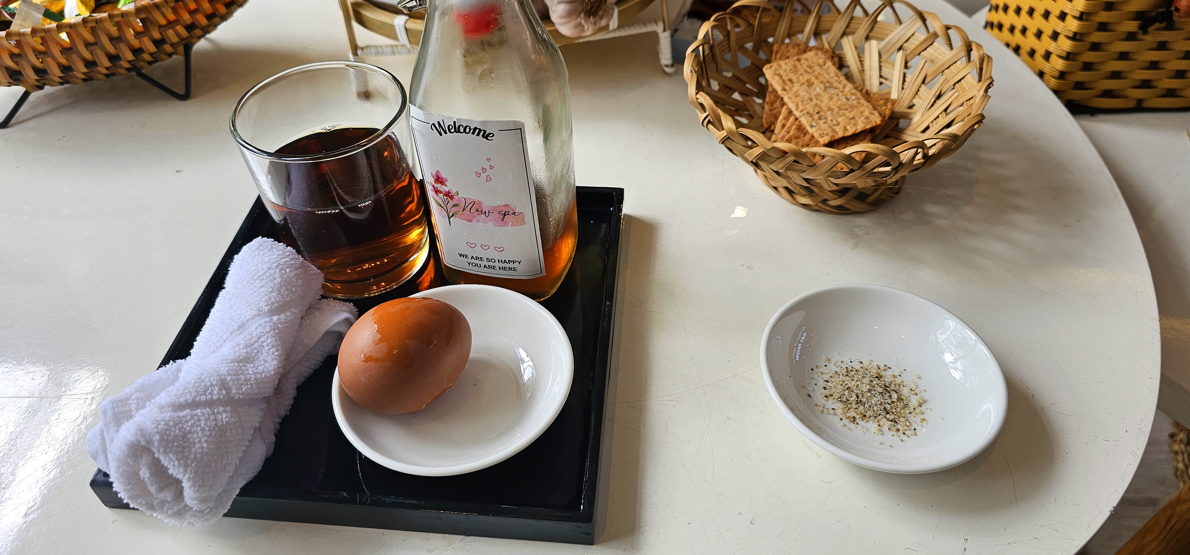 마사지를 받고 나오니, 찐 계란과 허브차 그리고,