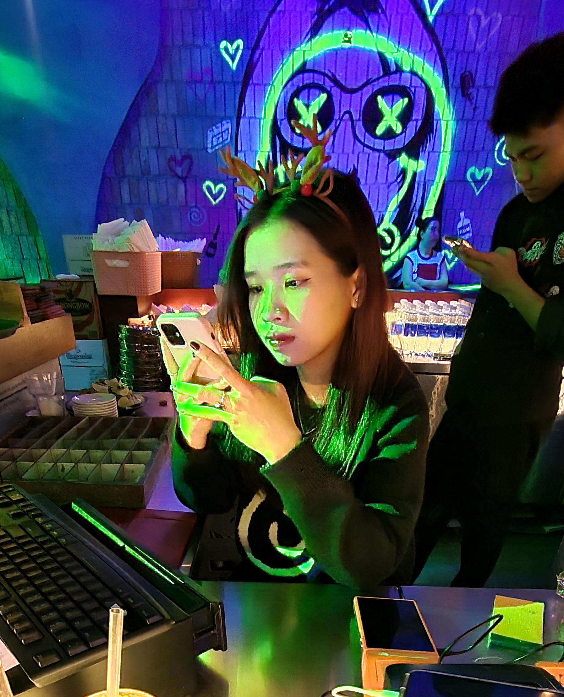 현란한 사이키 조명으로 사람이 바뀌어 버립니다.
