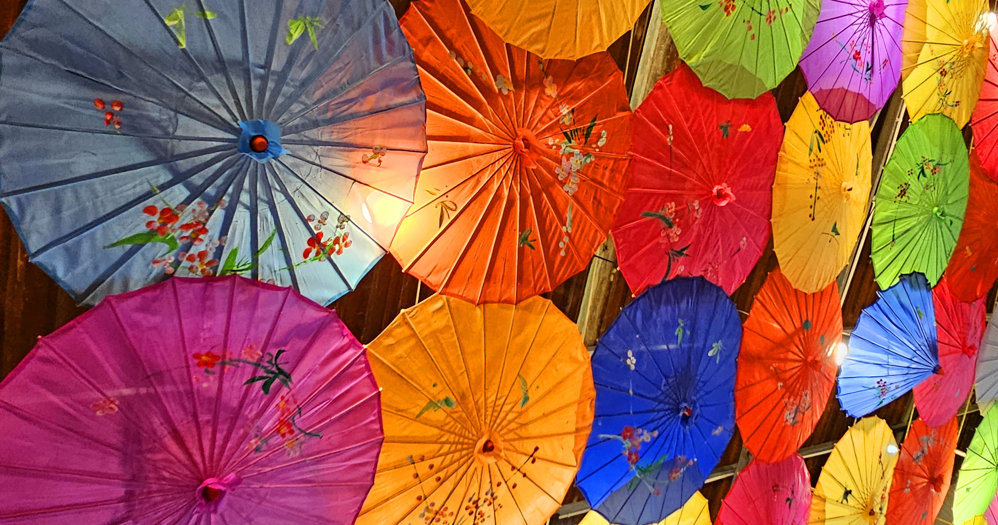 이런 형형색색인 우산을 실크로도 만듭니다.