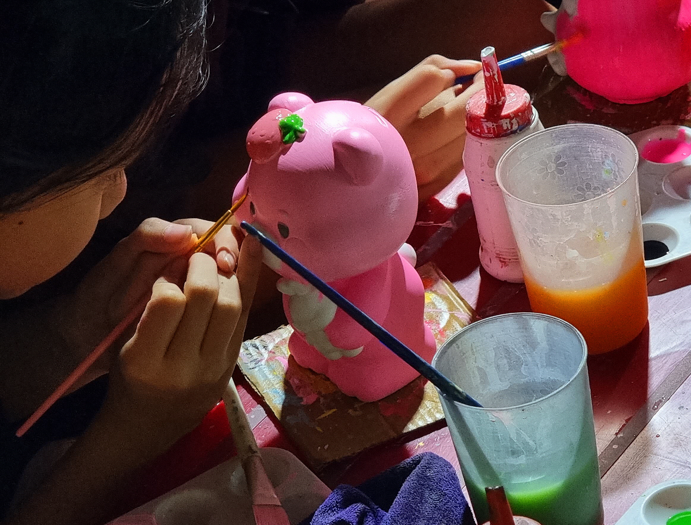 석고인형 색칠하기가 한창이네요.