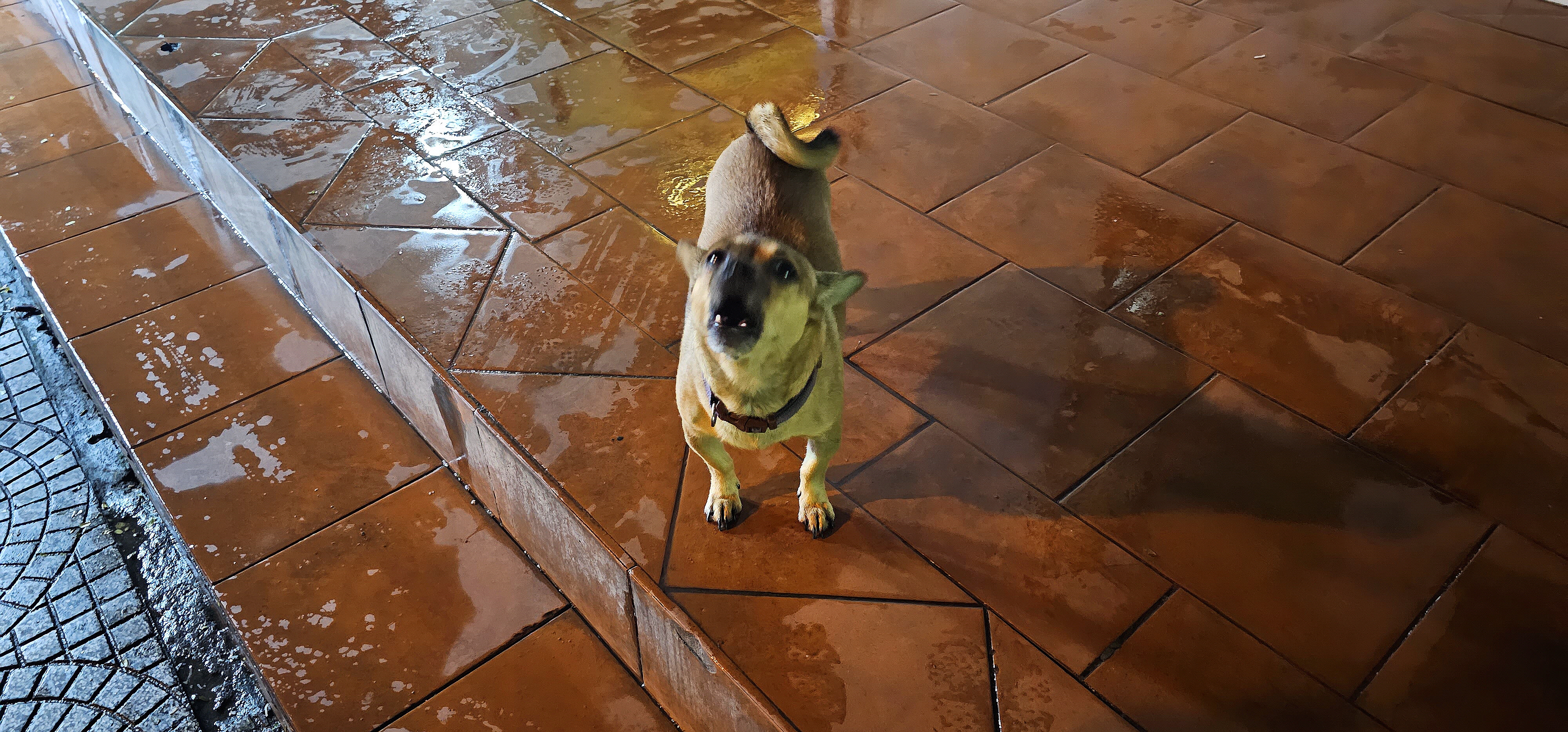 목줄 없이 평화를 누리는 견공 한 마리가