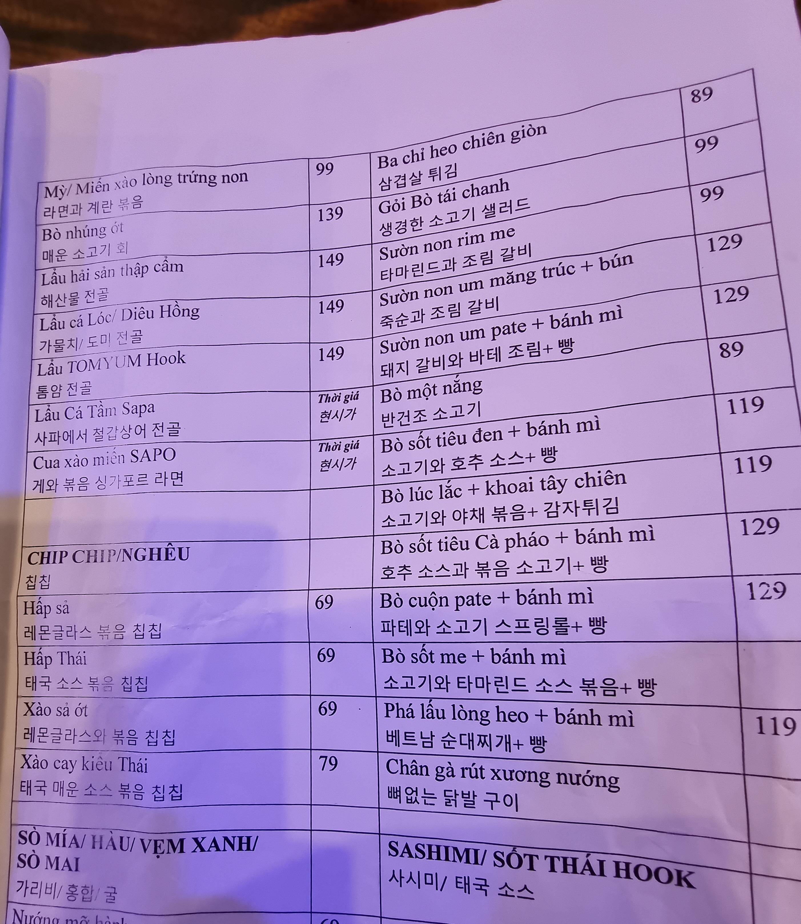 얼마나 한국인이 많이 오면 메뉴판이 한글로