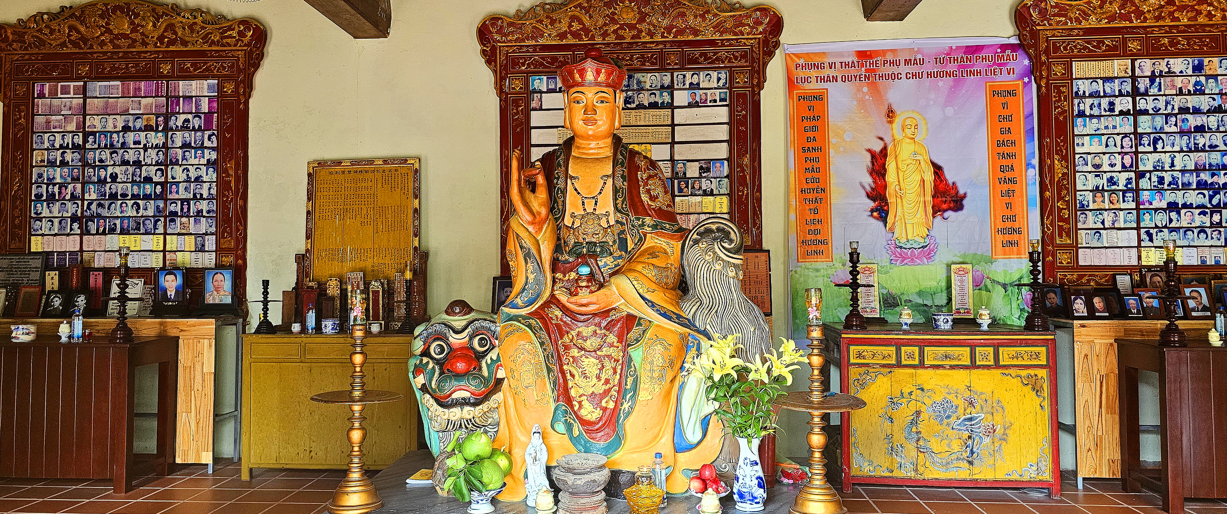 제단의 양쪽에는 Ho Phap과 Tieu Dien의 동상이 있습니다.