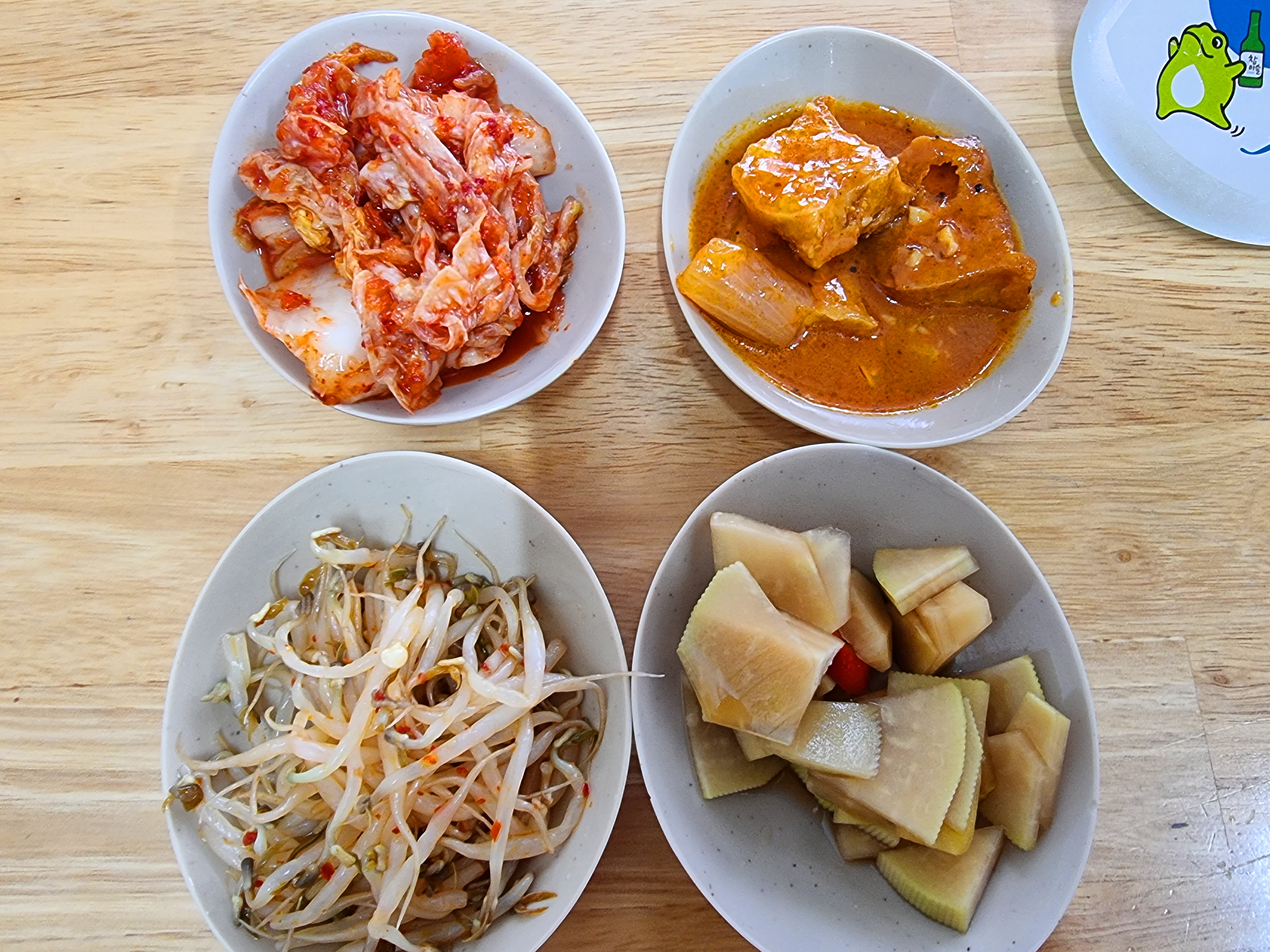 김치, 두부조림, 숙주나물,, 콩나물이 아니네요.