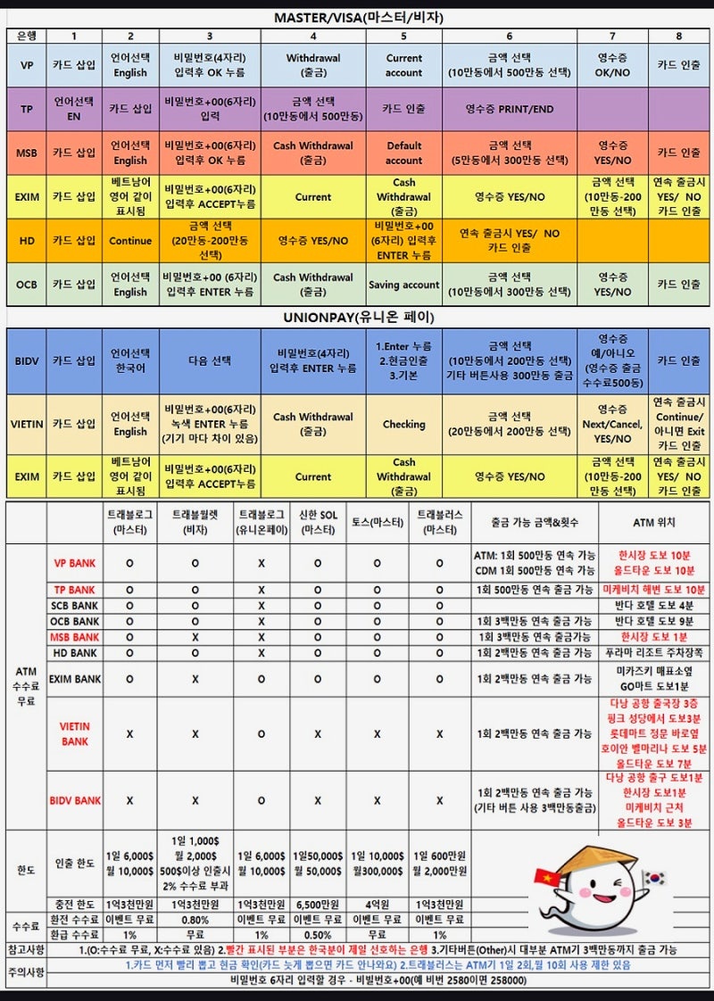 베트남에서 각 은행별 그리고, ATM 별