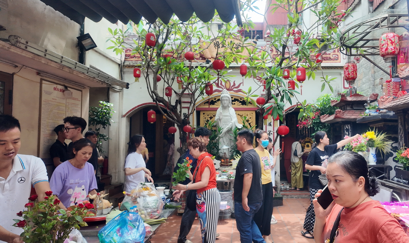 베트남 하노이의 작지만 역사적인 사찰의 참배