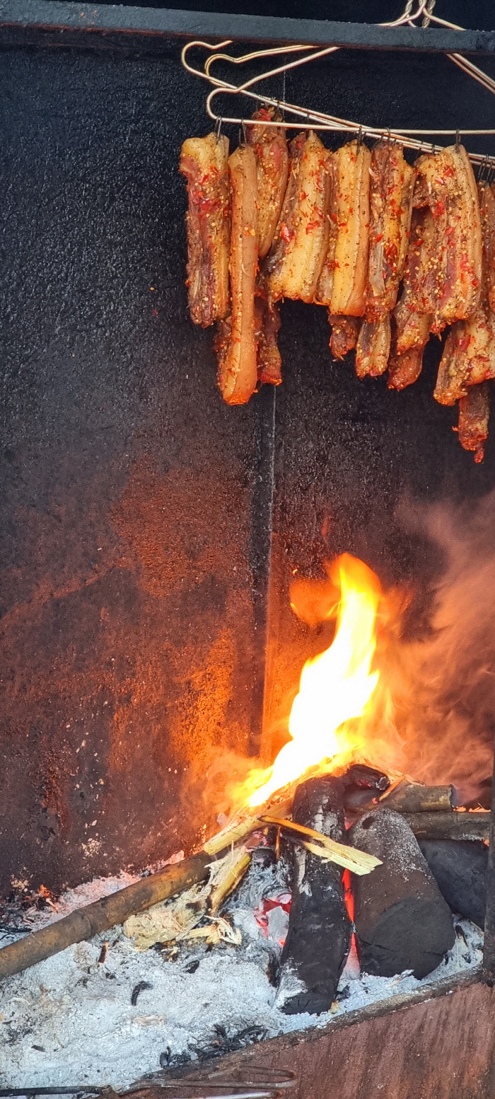 돼지고기 육포를 만드는 걸 구경하는 중인데