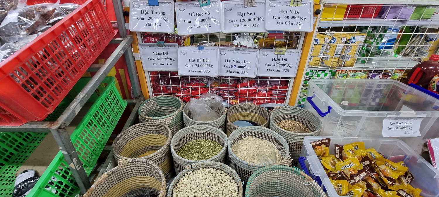 연꽃 씨앗을 비롯해 콩, 검은콩, 껍질 벗긴 콩, 검은깨 등을 파는데