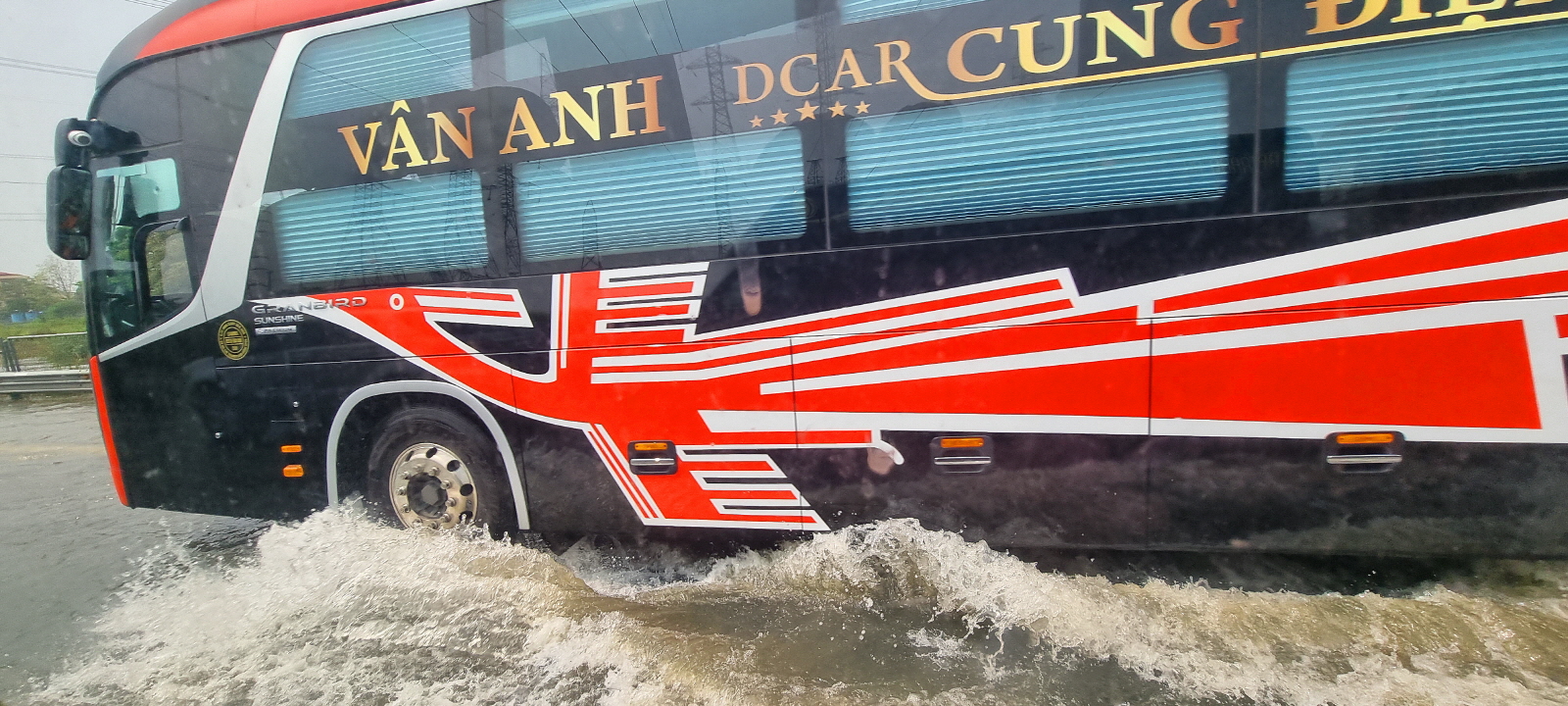 여기만 물에 도로가 잠겨서 차가 밀리는 현상입니다.