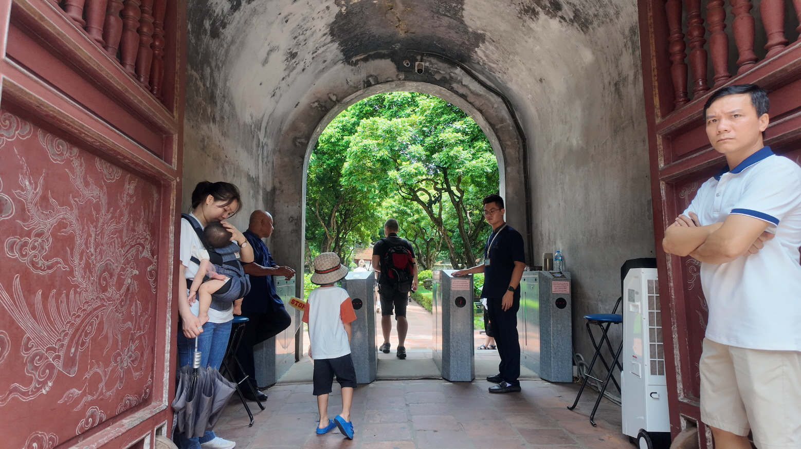 문묘에서 현지인들이 아오자이를 입고