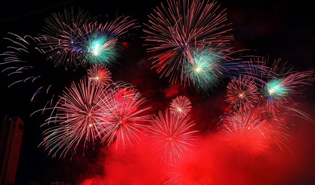 한강에 빛나는 유성처럼 작렬하는 불꽃놀이로