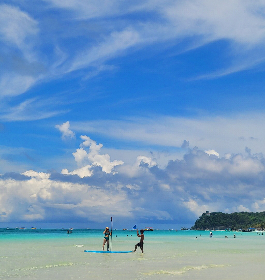 에메랄드빛 바다와 넓게 펼쳐진 백사장,