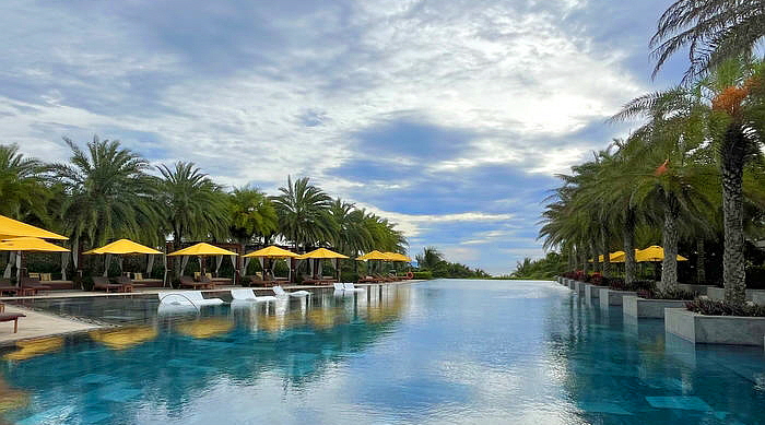 무더운 오늘, 시원한 리조트 수영장 풍경으로