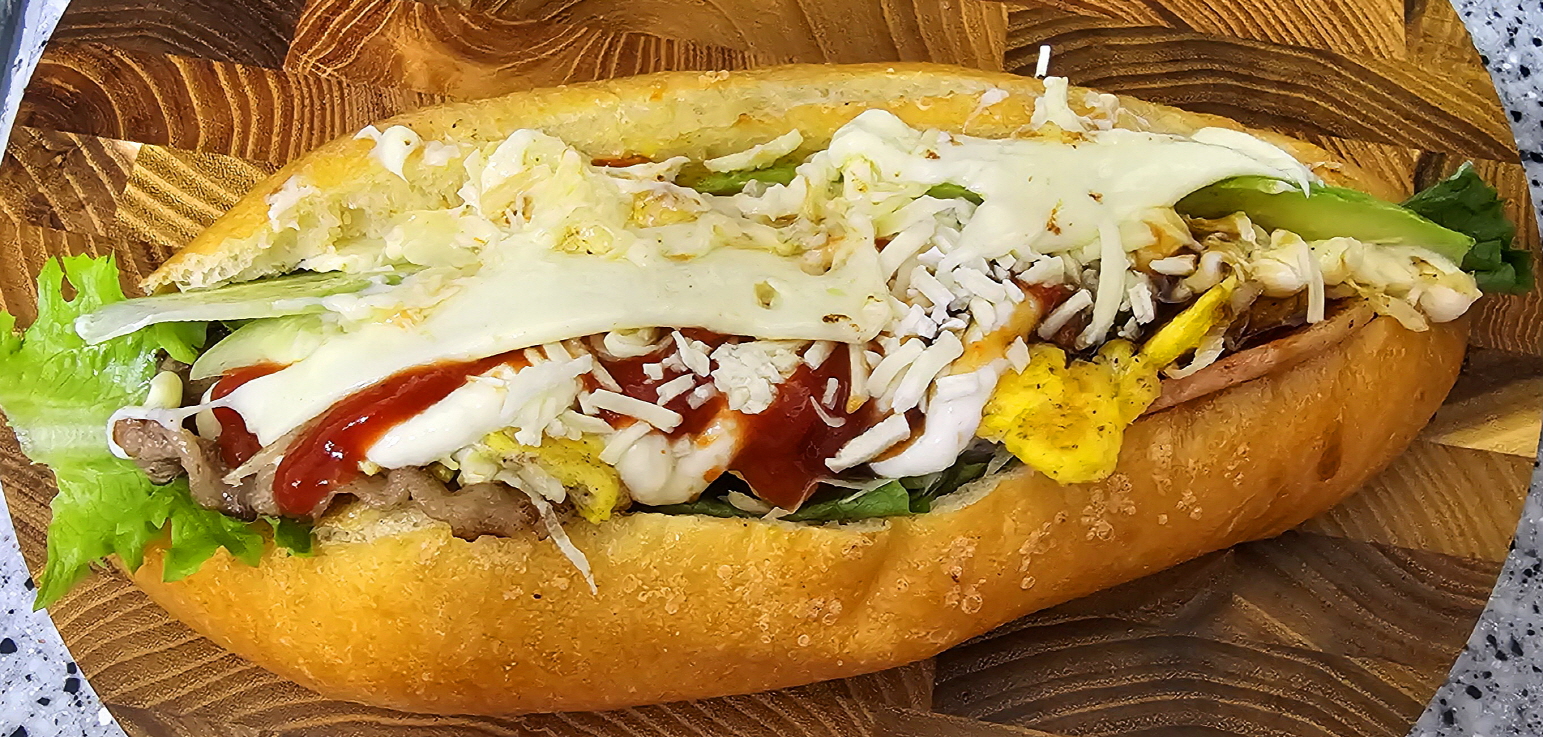 바게트 빵에 현지식 재료를 넣어 샌드위치처럼 만든 것이