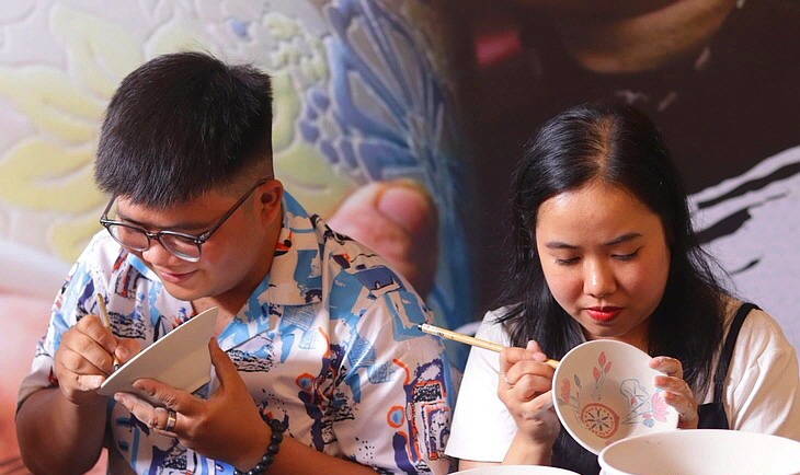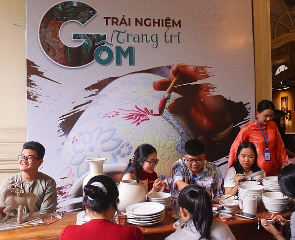 박물관에서 관광객들이 반쭝(베트남 전통 떡)