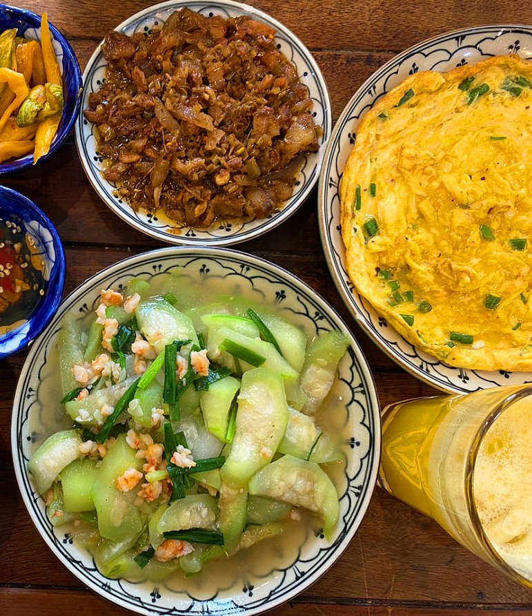 볶은 수세미 오이(Luffa) 요리와 계란 부침을